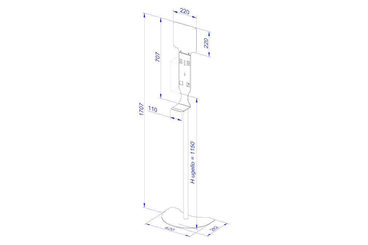 • Piantana universale per igienizzazione delle mani tramite dispenser automatico.