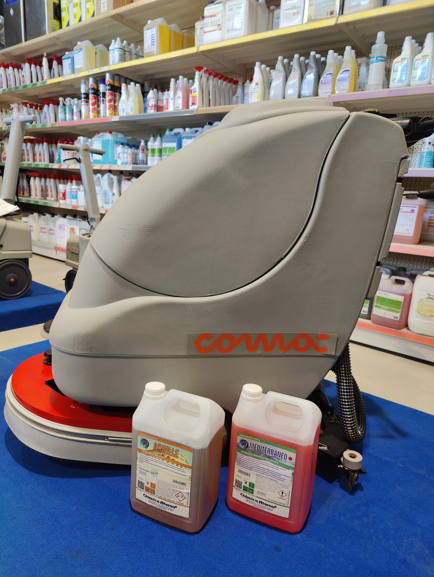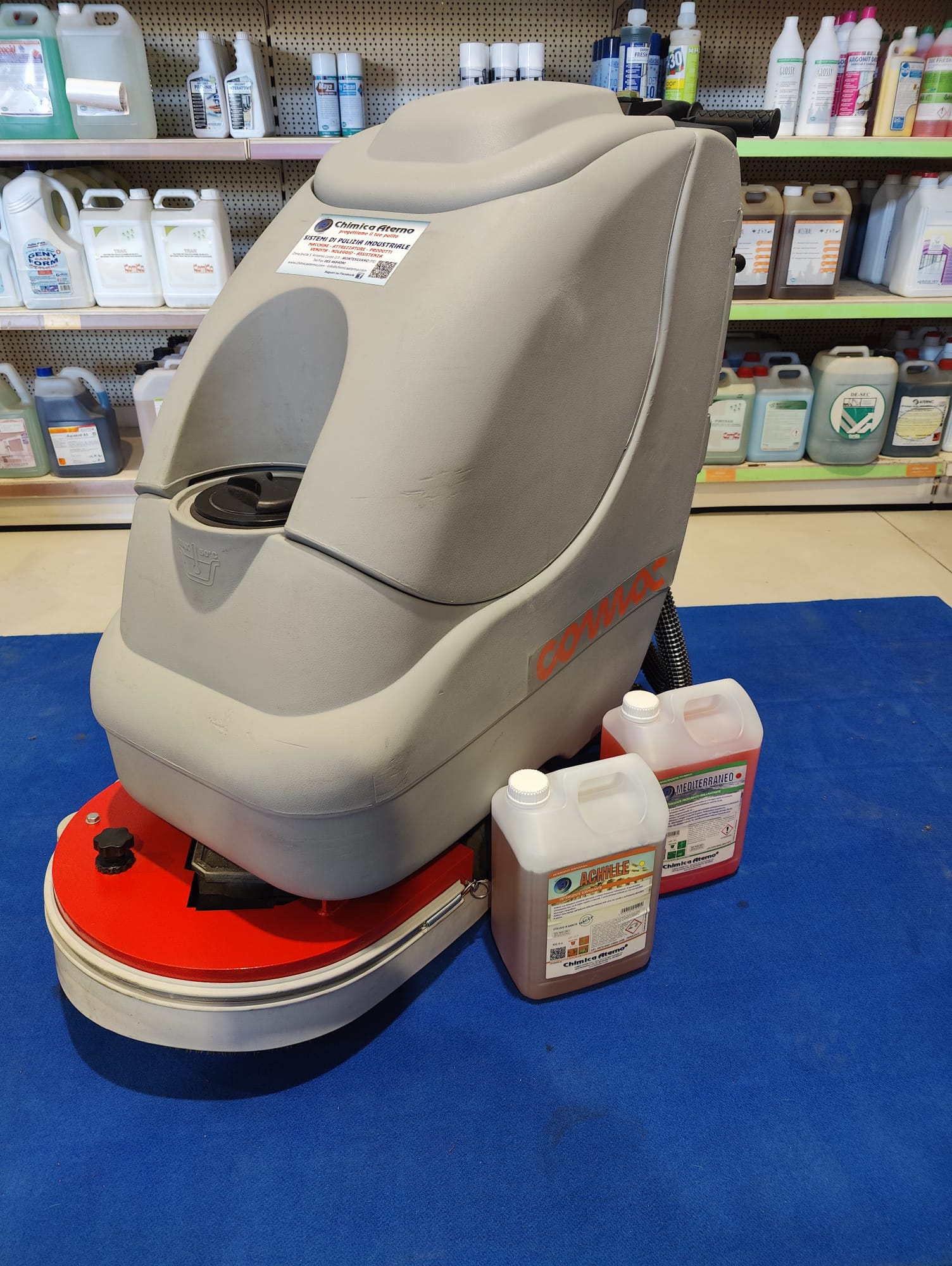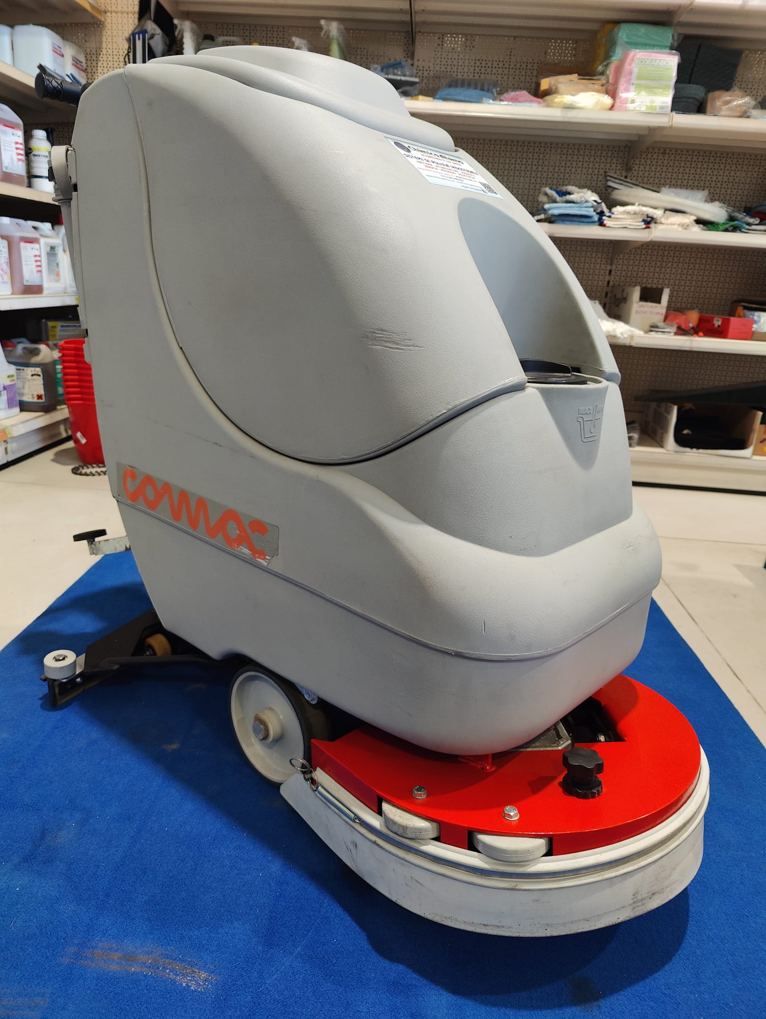 Lavasciuga COMAC ABILA 17 B lavapavimenti da uomo a terra a batteria. Usata per dimostrazioni pari al nuovo. Pista di lavoro cm.45, completa di pacco batterie da 24 v nuove, spazzole nuove, sistema di asciugatura nuovi. Macchina ideale per ambienti dai 150 mq ai 1500. Ingombro minimo passa attraverso porte da 70 cm.