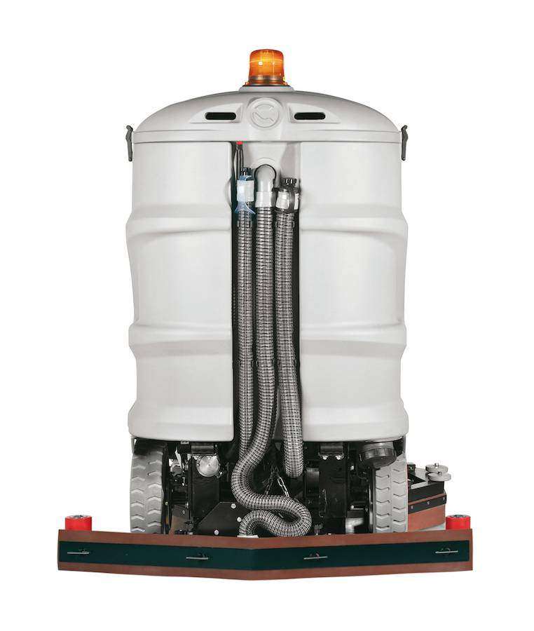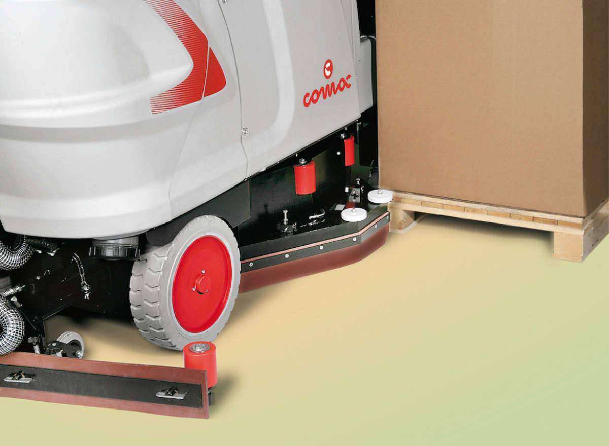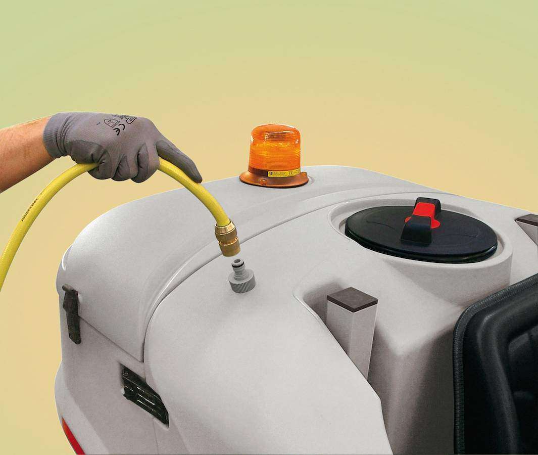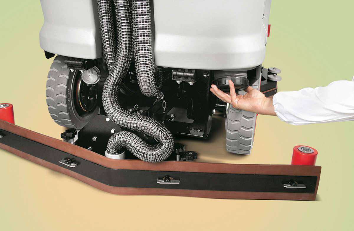 Ultra 100 nasce di serie con: Dispositivo di riduzione della velocità in curva; Arresto funzionamento spazzole e uscita dell’acqua, allo stop trazione; Allarme acustico di retro-marcia; Spia livello acqua pulita; Galleggiante elettronico serbatoio di recupero.
