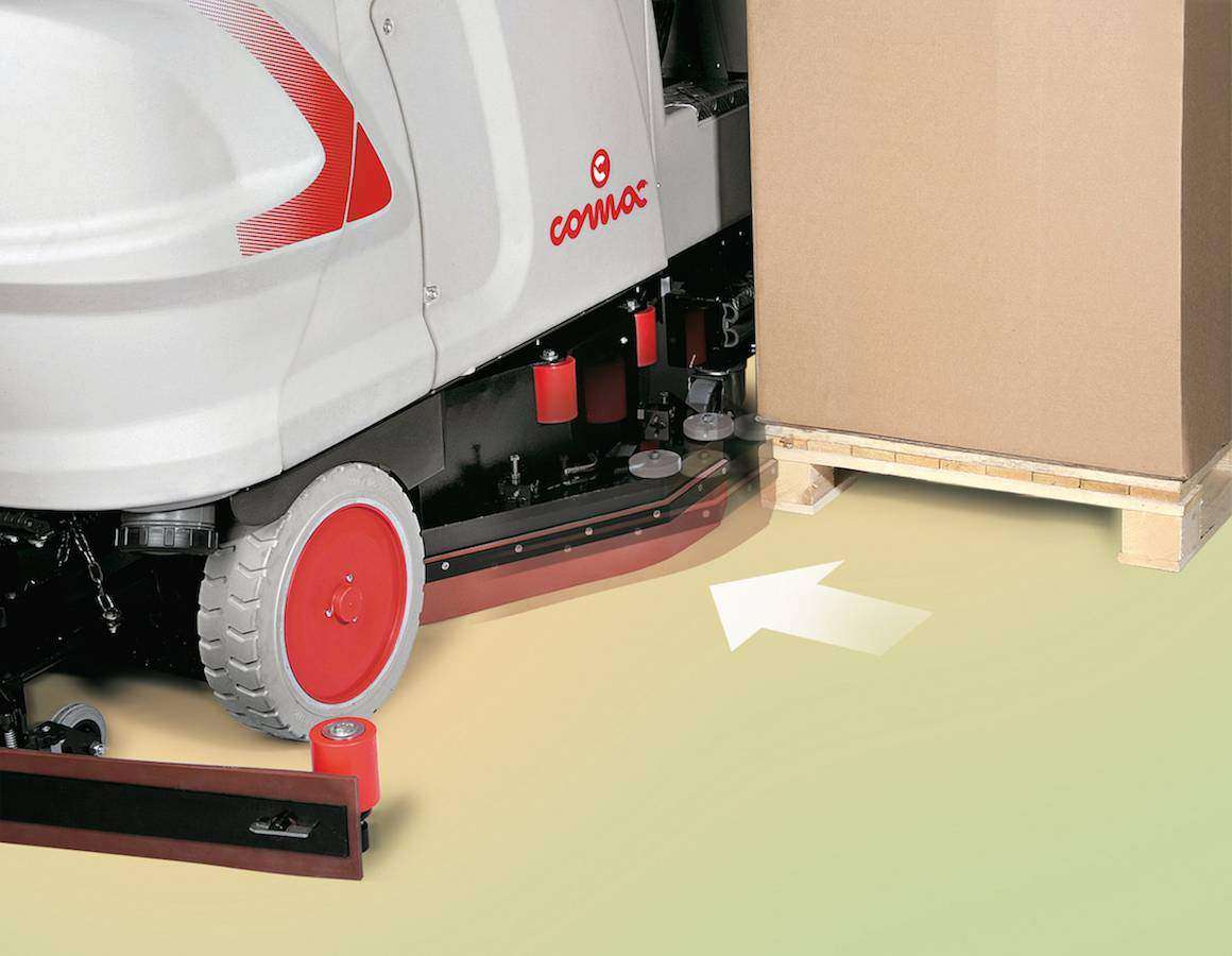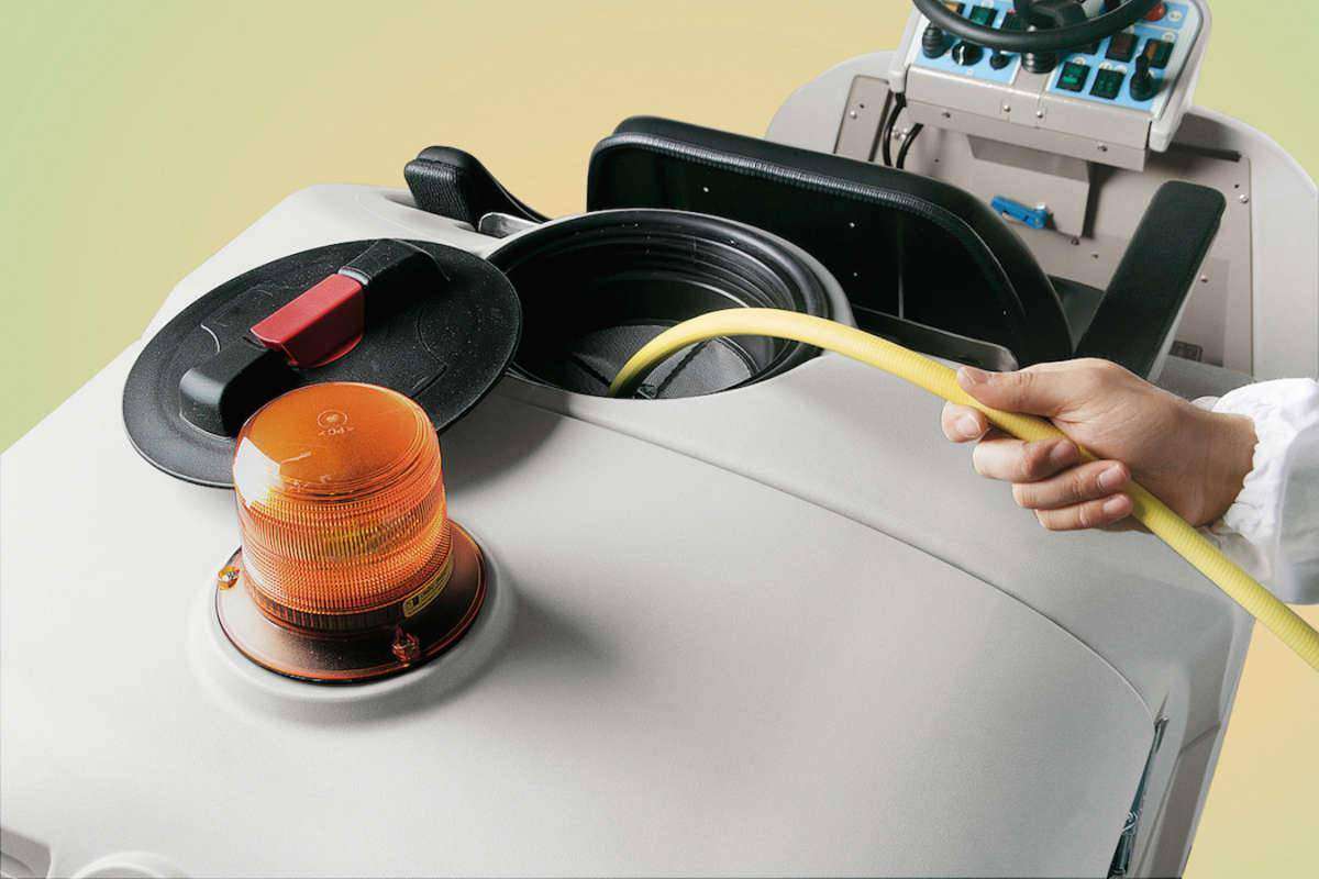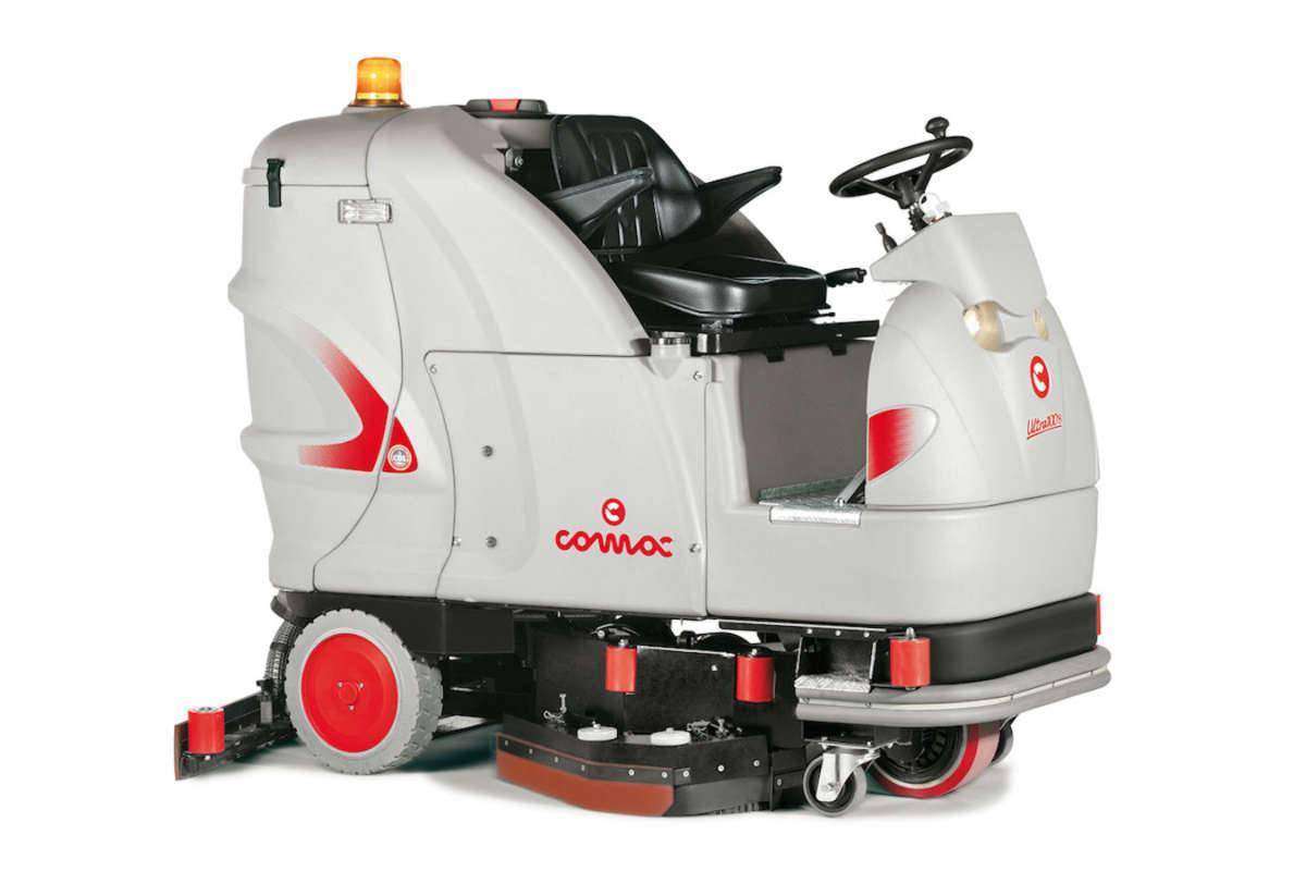 Ultra 100 nasce di serie con: Dispositivo di riduzione della velocità in curva; Arresto funzionamento spazzole e uscita dell’acqua, allo stop trazione; Allarme acustico di retro-marcia; Spia livello acqua pulita; Galleggiante elettronico serbatoio di recupero.